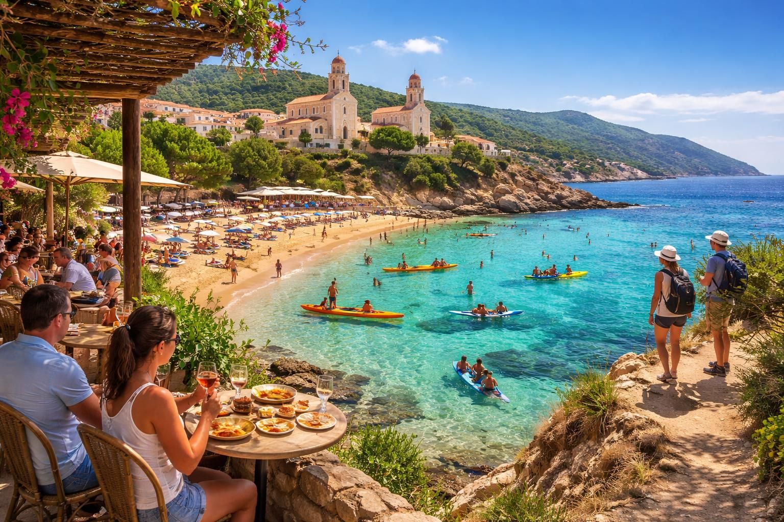 Les plages de Cargèse peuvent se prêter à une multitude d’activités. D’une part, les amoureux de l’eau peuvent s’essayer à la plongée sous-marine pour découvrir la faune marine environnante. D’autre part, les plages offrent également des possibilités de baignade, de balades en bateau ou de simples moments de détente au soleil. Les restaurants et kiosques à proximité proposent une cuisine corse typique, permettant ainsi de goûter aux délices locaux après une journée à la plage.