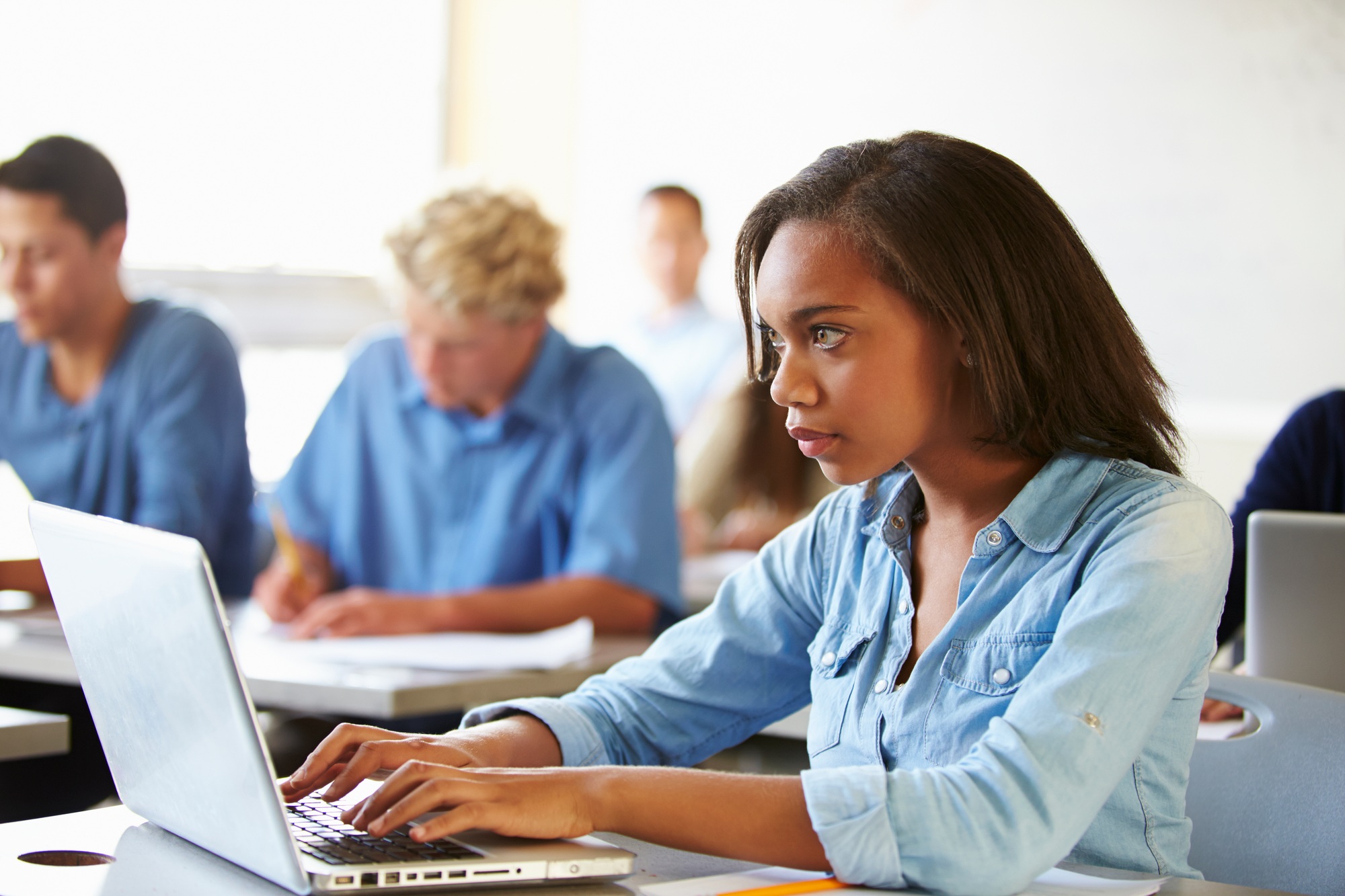 High School Students In Class Using Laptops